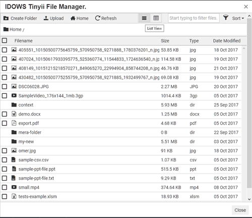 You can preview some screen grabs below of the file manager or click here to see the live demo.
